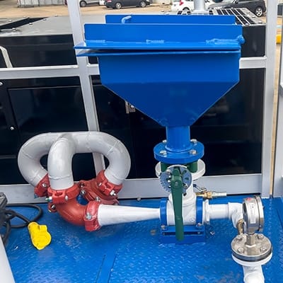 High-Shear Hopper – Jet Shear Hopper with venturi nozzle and foldout table makes chemical loading safe and efficient.