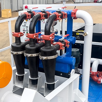 Hydrocyclones – Vortex 4 four-inch desilter hydrocyclones with isolation valves for second stage sand and silt removal.